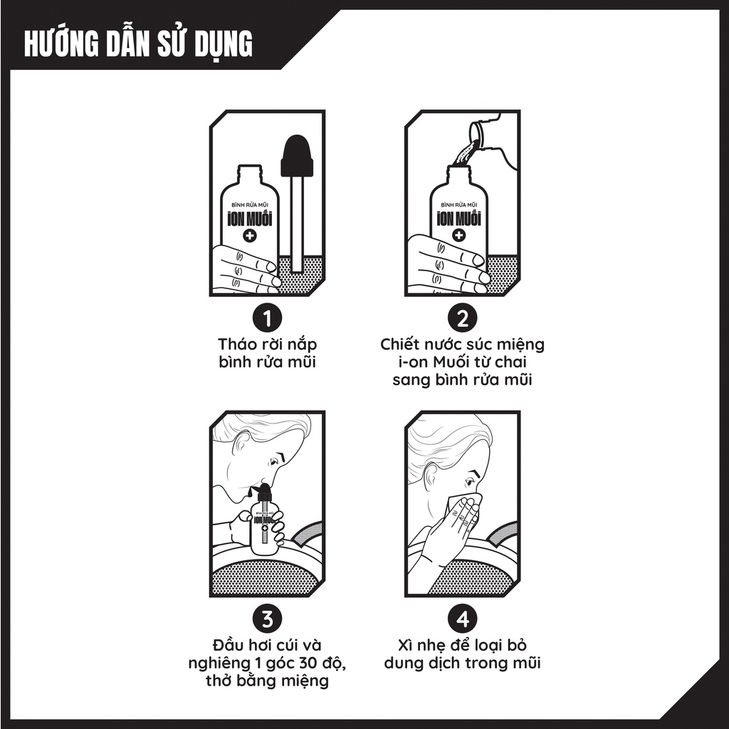 Bước 2: Chiết nước ion muối từ chai 300ml hoặc 680ml vào bình rửa mũi